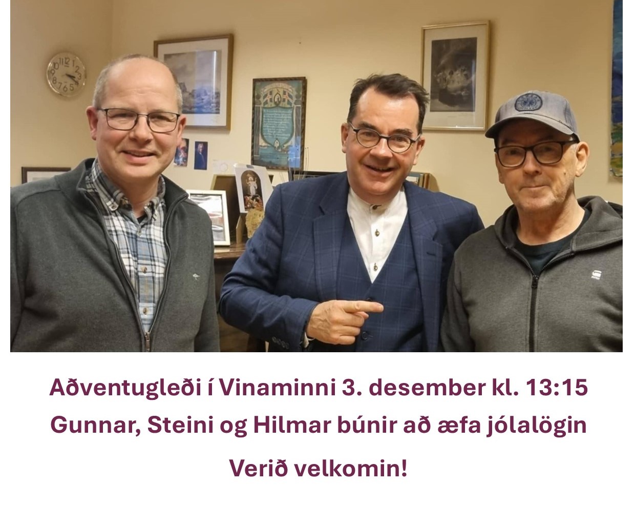 Miðvikudagur 3. desember Kyrrðarstund í Akraneskirkju kl. 12:10 - súpa í Vinaminni á eftir Opið hús í Vinaminni - aðventugleði - dagskrá hefst kl. 13:15 Upplestur, söngur [...]